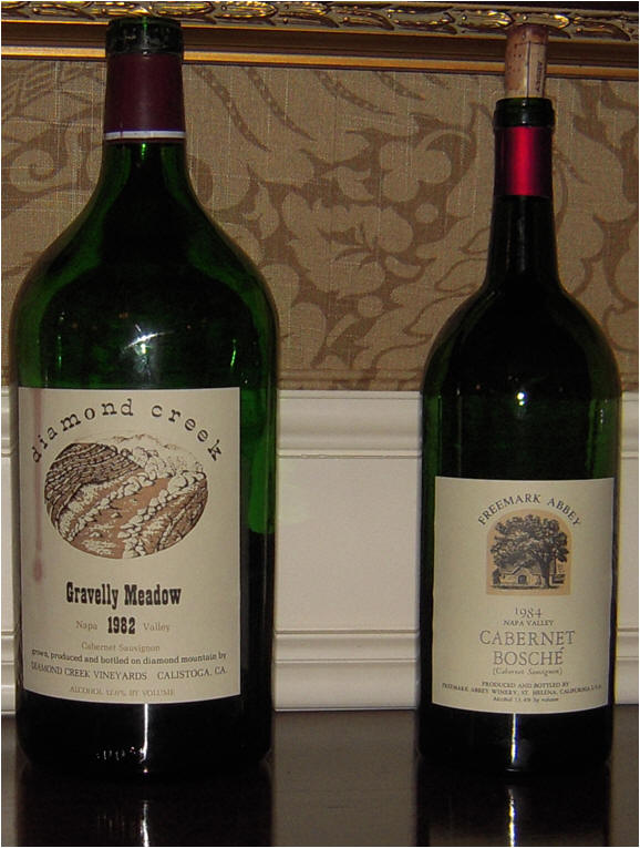 Then, they served Diamond Creek Napa Valley Red Rock Terrace Cabernet Sauvignon 1984 from magnums at son Drew's wedding reception dinner. They featured 1989 vintage Diamond Creek Lake Vineyard for son Matt's wedding rehearsal dinner.
